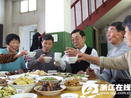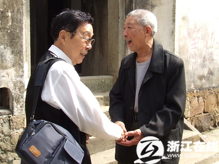 浙江在線杭州4月7日訊(見習(xí)記者 童俊) “老大哥,回來啦,身體怎么樣?”“好、好,你又上山啦,上墳了沒有?”剛走進(jìn)鮑塢村的村口,徐憶中老人迎面碰上了從田里干完活的老漢徐國棟,兩人拉起一陣家常。徐老笑著說:“我離開的時(shí)候,他還穿著開襠褲呢,哈哈哈!”已經(jīng)84歲高齡的他,一身西裝打扮,走起路來虎虎生風(fēng),走山路的時(shí)候執(zhí)意不要侄女?dāng)v扶:“你還是看好自己的腳下吧!”侄女徐妙華望著二叔已經(jīng)走遠(yuǎn)的身影,無奈地笑了笑。