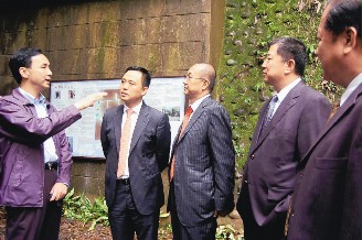 大陸富豪考察團(tuán)在后慈湖軍事隧道前聽取解說。