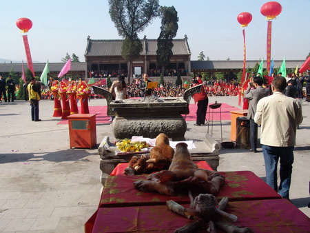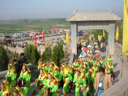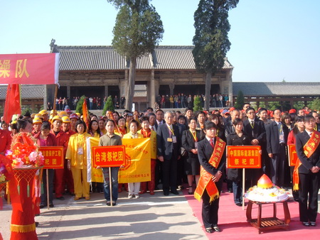 近年來,每逢農(nóng)歷三月十八,都有規(guī)模盛大的民間祭祀活動。臺灣同胞和海外僑胞們,屆時也不遠萬里,不辭辛苦前來朝拜和祭祖。今年臺灣的中華地母至尊道教會,中華道教仙福地母至尊文化交流協(xié)會,臺北瀘州護天宮地母管理委員會,臺中仙福堂地母至尊總會等民間團體組織了上百名信眾前來參加大典。他們按照中華民族的傳統(tǒng)習俗,進行了獻貢品、讀祭文、祭先祖、求圣土等謁祖朝圣活動,虔誠的祈禱兩岸風調(diào)雨順、互利共贏。