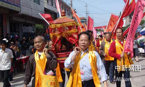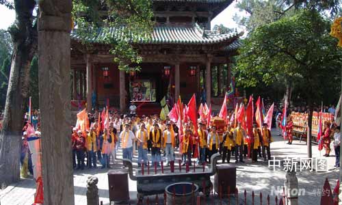 中新網(wǎng)5月14日電 (王鐵成 李旭鵬)農(nóng)歷四月初八,是山西運(yùn)城市解州鎮(zhèn)古廟會(huì),也是位于解州的關(guān)帝祖廟舉辦“關(guān)帝巡城”活動(dòng)之日。當(dāng)天上午,關(guān)帝圣像在鑼鼓、令旗開(kāi)道下,在來(lái)自福建等地及當(dāng)?shù)匦磐降拇負(fù)硐,乘十六抬大轎巡游解州古城,所到之外,香煙裊裊,鞭炮起鳴,民眾紛紛頂禮膜拜。正在山西平遙拍攝《大陸尋奇—山西篇》的臺(tái)灣中國(guó)電視公司與中國(guó)華藝音像實(shí)業(yè)有限公司一行六人也聞?dòng)嵡皝?lái),趕制專(zhuān)題節(jié)目。