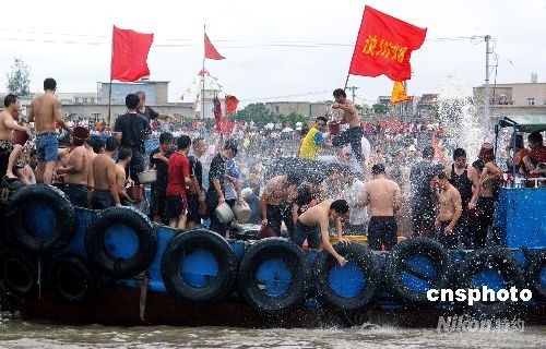 每逢端午節(jié),兩岸對(duì)渡的船只都要在蚶江海邊追逐潑水,以這種歡快的方式互祝吉祥,交融情誼,并祈求平安興旺!昂I蠞娝钡牧(xí)俗由此產(chǎn)生并代代相傳。