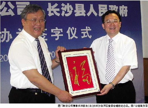 據(jù)廈門航空公司董事長洪荻生介紹:“廈門航空公司之所以選擇在長沙縣設(shè)立分公司,一是看好長沙黃花機(jī)場的吞吐量,二是看好長沙縣優(yōu)質(zhì)高效的政務(wù)服務(wù)環(huán)境。