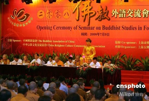 7月9日,“2008年佛教外語交流會”在上海玉佛寺舉行,海內(nèi)外百余位佛教界代表濟(jì)濟(jì)一堂,以英、韓、日等多種語言暢談開展國際交流的經(jīng)驗(yàn)與心得。 中新社發(fā) 湯彥俊 攝