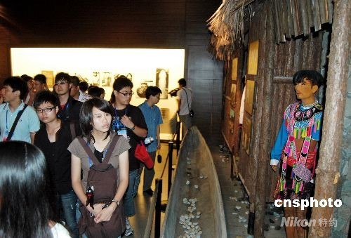7月7日下午,參加海峽西岸2008年臺(tái)胞青年夏令營(yíng)的110多名臺(tái)胞青年來(lái)到位于古城泉州的中國(guó)閩臺(tái)緣博物館,參觀了以地緣、血緣、法緣、商緣、文緣來(lái)展示的閩臺(tái)兩地從古至今密不可分的淵源。此次夏令營(yíng)以“魅力海西、臺(tái)胞祖地”為主題,讓兩岸青年在參觀歷史文化古跡、聆聽(tīng)閩臺(tái)傳統(tǒng)文化講座、舉行聯(lián)歡活動(dòng)中增進(jìn)友誼已經(jīng)對(duì)福建的了解。 中新社發(fā) 傅丹丹 攝