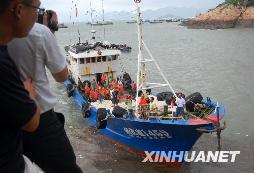 7月30日,搭乘4名獲救臺胞的船只緩緩靠岸。新華社記者 姜克紅 攝
