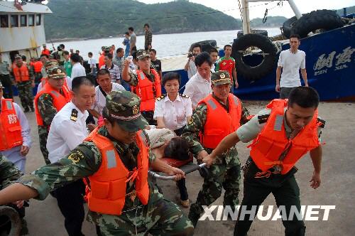 7月30日,邊防官兵和海事人員將獲救的臺胞轉移上岸。新華社記者 姜克紅 攝