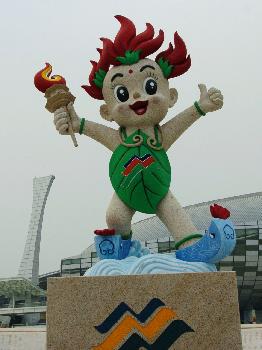 第六屆全國(guó)農(nóng)運(yùn)會(huì)吉祥物“同同”(9月4日攝)。
