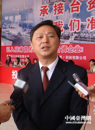 閻鋼軍:我這里有個(gè)數(shù)據(jù),據(jù)統(tǒng)計(jì),2000年,臺(tái)商在江西平均投資規(guī)模為100萬(wàn)美元左右,到2007年則上升至600萬(wàn)美元。2007年,全省在新增合同臺(tái)資額一千萬(wàn)美元以上的項(xiàng)目有29個(gè),合同臺(tái)資額8.13億美元,占總數(shù)的39.33%;全省已累計(jì)批準(zhǔn)合同臺(tái)資額一千萬(wàn)美元以上的項(xiàng)目81個(gè),其中合同臺(tái)資額1億美元以上的有6個(gè)。全球領(lǐng)先的臺(tái)灣華碩電子集團(tuán)在吉安投資30億元,創(chuàng)建和碩科技(江西)有限公司,整個(gè)項(xiàng)目建成后,將成為中國(guó)內(nèi)陸地區(qū)最大的電腦及其周邊產(chǎn)品生產(chǎn)基地,年產(chǎn)值將達(dá)100億元,出口創(chuàng)匯5至10億美元。這說(shuō)明臺(tái)商在江西項(xiàng)目平均投資規(guī)模正在不斷擴(kuò)大,大項(xiàng)目正在不斷增多。