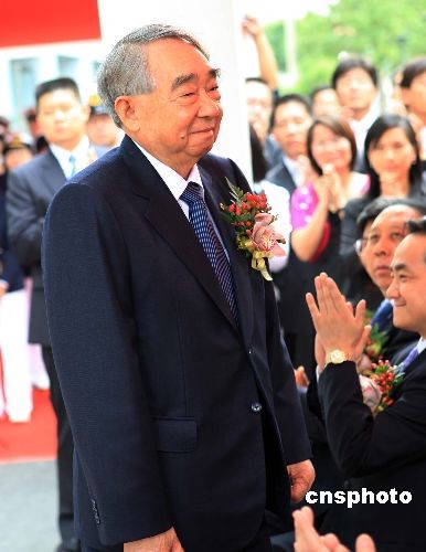 10月11日,臺(tái)灣航運(yùn)巨賈、長(zhǎng)榮集團(tuán)總裁張榮發(fā),在上海出席長(zhǎng)榮集團(tuán)大陸營(yíng)運(yùn)總部啟用儀式。 中新社發(fā) 潘索菲 攝