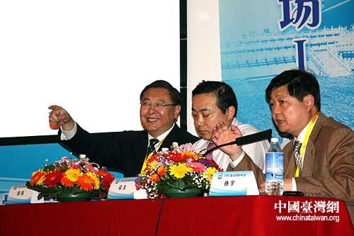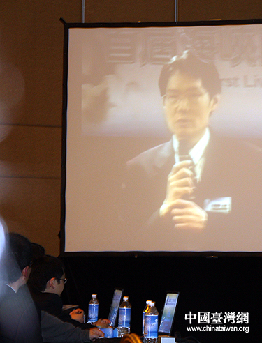 兩岸學者借由視訊技術通過大屏幕進行交流(李徽 攝)