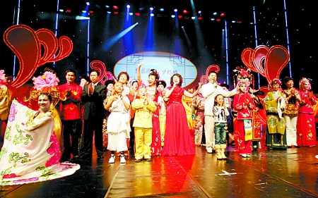 11月25日晚7時30分,《梨園飛歌·少林功》大型文藝演出以少林武功十八般武藝的精彩展示拉開首場演出序幕;由我省豫劇三團(tuán)青年表演藝術(shù)家張春玲與臺灣豫劇團(tuán)青年表演藝術(shù)家蕭揚玲聯(lián)袂出演《抬花轎》,展現(xiàn)出豫臺兩地豫劇名家的交融與風(fēng)采;《梨園春》小擂主牛欣欣以精彩的豫劇清唱和邊歌邊舞的高山族歌曲演唱,讓現(xiàn)場的觀眾興奮不已;最后,由我省著名豫劇表演藝術(shù)家李金枝、賈文龍共同演唱戲歌《好個大中原》,大氣磅礴的唱詞、悅耳流暢的旋律,加上電視屏幕上對河南歷史文化的影像展示,把當(dāng)晚演出氣氛推向了高潮。