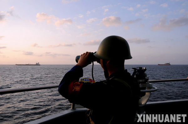 1月12日,在中國(guó)海軍護(hù)航編隊(duì)的亞丁灣護(hù)航行動(dòng)中,一名戰(zhàn)士在“武漢”艦上執(zhí)勤。當(dāng)?shù)貢r(shí)間1月12日6時(shí)(北京時(shí)間11時(shí)),中國(guó)海軍護(hù)航編隊(duì)為包括臺(tái)灣商船“宇善”號(hào)在內(nèi)的4艘船舶組織實(shí)施護(hù)航。這是中國(guó)海軍護(hù)航編隊(duì)抵達(dá)亞丁灣以來(lái)的第2次護(hù)航行動(dòng)。 新華社發(fā)(錢(qián)曉虎攝)
