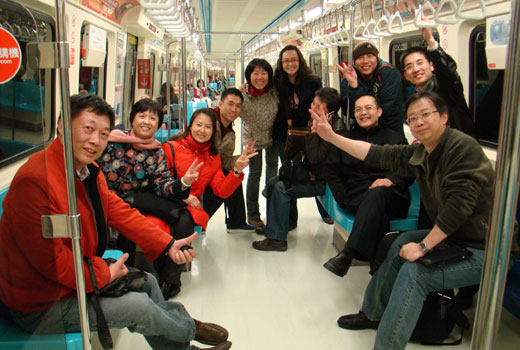 圖為除夕之夜,大陸駐臺(tái)記者在采訪歸來(lái)的捷運(yùn)列車內(nèi)合影留念。圖為新華社記者李凱、王妍,人民日?qǐng)?bào)駐臺(tái)記者吳亞明、陳曉星,中央人民廣播電臺(tái)記者張浩、謝治國(guó),中央電視臺(tái)記者殷捷、陳軒石,東南衛(wèi)視記者葉青林、黃晟,福建日?qǐng)?bào)記者林娟、翁之光。