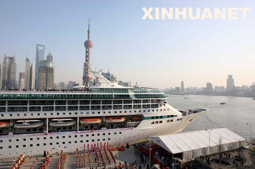 3月14日,載有1600名大陸游客的“海洋神話”號(hào)豪華郵輪從上海緩緩啟航。當(dāng)日下午5時(shí)許,由中國港中旅集團(tuán)組織的“安利心印寶島萬人行”首航臺(tái)灣啟航儀式,在上海北外灘上海港國際客運(yùn)中心碼頭舉行,這是自兩岸基本實(shí)現(xiàn)“三通”以來的第一個(gè)郵輪赴臺(tái)旅游團(tuán)。新華社發(fā)