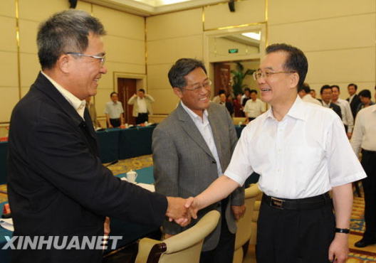 5月8日晚,溫家寶總理在廈門主持召開企業(yè)負責人座談會。這是會前和臺資企業(yè)代表握手。當日,中共中央政治局常委、國務院總理溫家寶來到廈門進行考察。新華社記者 李學仁 攝