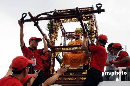 應(yīng)臺中縣王姓宗親會邀請,福州市閩王金身赴臺巡安暨宗親文化交流訪問團(tuán)一行八十五人,是于十九日護(hù)送閩王金身循“兩馬”航線赴臺灣島內(nèi)開始為期十天的巡安活動的。