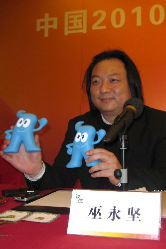 資料圖:臺(tái)灣設(shè)計(jì)師巫永堅(jiān)亮相中國(guó)二0一0年上海世博會(huì)吉祥物揭曉新聞發(fā)布會(huì) 中新社發(fā) 裔蕊華 攝