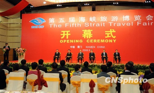 中新社廈門九月六日電 (詹托榮)以“海峽旅游·合作共贏”為主題的第五屆海峽旅游博覽會(huì)六日晚在廈門開(kāi)幕。來(lái)自內(nèi)地、臺(tái)灣、香港、澳門兩岸四地的旅游業(yè)者及境內(nèi)外嘉賓出席開(kāi)幕式,就海峽兩岸旅游業(yè)的互惠互利、合作共贏進(jìn)行商談。