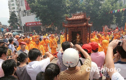 中新社順昌九月九日電 (記者 周文杰)首屆海峽兩岸齊天大圣文化旅游節(jié)九日在福建順昌縣開幕,兩岸信眾共同祭祀齊天大圣,參與兩岸齊天大圣金身踩街巡安等活動(dòng)。