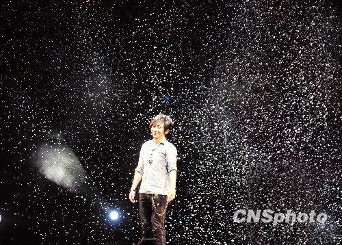 9月25日晚,劉謙亞洲魔術(shù)巡演福州站上演了驚險(xiǎn)的劍口逃生、浪漫的雪花共舞、神奇的牌術(shù)手法等。演出摒棄了傳統(tǒng)魔術(shù)的沉悶呆板千篇一律,時(shí)而浪漫溫馨時(shí)而調(diào)皮搞怪,觀眾的笑聲、掌聲經(jīng)久不斷。圖為劉謙訴說著非洲女孩的夢(mèng)想,此時(shí)現(xiàn)場(chǎng)隨著劉謙神奇的手揮動(dòng)中變出浪漫的雪花,全場(chǎng)一片驚呼。 中新社發(fā) 張麗君 攝