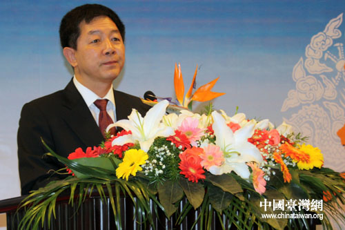 中共中央臺灣工作辦公室、國務院臺灣事務辦公室副主任葉克冬在“第七屆海峽兩岸中華傳統(tǒng)文化與現(xiàn)代化研討會暨首屆海峽兩岸醫(yī)學文化與醫(yī)學發(fā)展論壇”致辭。(中國臺灣網(wǎng) 董潔 攝)