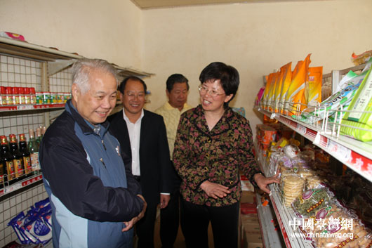 11月6日,親民黨副主席張昭雄率領(lǐng)出席兩岸農(nóng)漁水利合作交流會(huì)的53名臺(tái)灣代表到上海崇明島華西村考察。圖為張昭雄參觀村內(nèi)為民服務(wù)超市。(中國(guó)臺(tái)灣網(wǎng) 鐘寶華 攝)