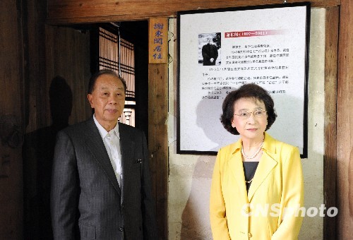 11月8日,前來中國國民黨直屬臺(tái)灣黨部舊址——福建永安復(fù)興堡參觀的臺(tái)灣實(shí)踐大學(xué)董事長、原臺(tái)灣副領(lǐng)導(dǎo)人謝東閔之子謝孟雄(左)與夫人中國國民黨原副主席、中國國民黨中央評(píng)議委員會(huì)主席團(tuán)主席林澄枝(右)在該舊址內(nèi)其父謝東閔居住過的房間前合影留念。位于福建永安燕西街道文龍村內(nèi)的復(fù)興堡,始建于清代,與福建戰(zhàn)時(shí)省會(huì)永安一起見證了抗戰(zhàn)風(fēng)云。為了便于進(jìn)一步開展工作,1943... 中新社發(fā) 劉可耕 攝