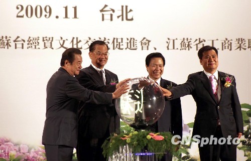 十日的臺(tái)北圓山飯店高朋滿座,數(shù)千人規(guī)模的江蘇代表團(tuán),外加大批臺(tái)商的踴躍捧場(chǎng),令開幕式現(xiàn)場(chǎng)座無虛席,就連兩側(cè)走道上都擠滿引頸而望的來賓。雖然今日的臺(tái)北連綿秋雨略帶了些微薄的涼意,可會(huì)場(chǎng)內(nèi)無處不是暖意融融。