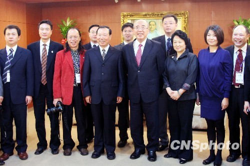 11月16日,海協(xié)會副會長王在希率海協(xié)會文化教育團(tuán),在臺北拜會中國國民黨榮譽(yù)主席吳伯雄,就兩岸文教交流交換意見。 中新社發(fā) 黃少華 攝