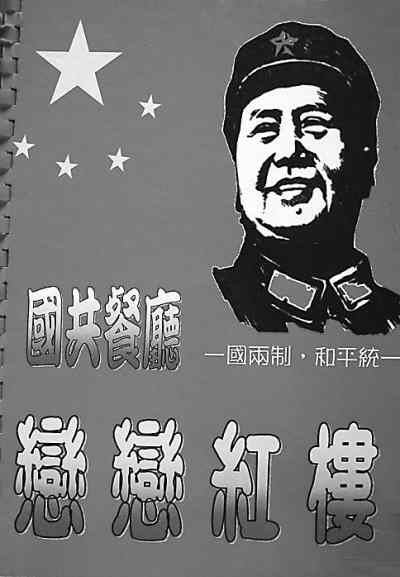 我在金門旅游時(shí),幾位年輕的郵友帶我來到金門老街。這條老街據(jù)說已經(jīng)有幾百年的歷史了,大部分店鋪都保存著原有的風(fēng)貌。這些店鋪主要經(jīng)營當(dāng)?shù)氐耐撂禺a(chǎn),比如金門貢糖、金門高粱酒、金門牛肉干、金門陳皮果,還有金門菜刀等,店鋪也像古代的酒店一樣,旗幡當(dāng)街飄揚(yáng),兩旁一盆盆的鮮花清香四溢,酒香花美,街道中央不時(shí)能看到百年的榕樹,盤根錯(cuò)節(jié)。海風(fēng)陣陣,這真是濤聲依舊,又見千年的滄桑,百年的風(fēng)雨,令人心曠神怡,不知今夕何夕。信步走來,我們想找個(gè)地方歇歇腳,喝喝咖啡。抬頭一看,前面“國共餐廳”4個(gè)大字極為醒目,紅旗飄揚(yáng),“走進(jìn)新時(shí)代”的歌聲清脆悅耳。我想:此時(shí)竟在何方,難道我們現(xiàn)在是在大陸嗎?難道國共雙方的代表曾在這里見過面嗎?我們帶著好奇心走進(jìn)了餐廳,美麗的小姐說著流利的普通話,熱情地歡迎我們,請我們?nèi)胱,為我們沏茶,而且馬上遞給我們一個(gè)菜譜。這菜譜一看,全是紅色,著軍裝的毛澤東像赫然在目,還有“一國兩制,和平統(tǒng)一”的口號,還印著五星紅旗。打開菜譜一看,有不少大陸的名菜,也有毛澤東喜歡吃的紅燒肉、臭豆腐,真是令人激動(dòng)!