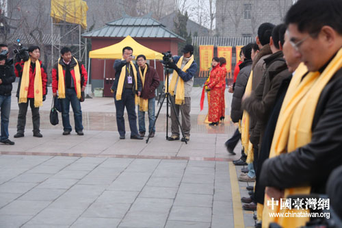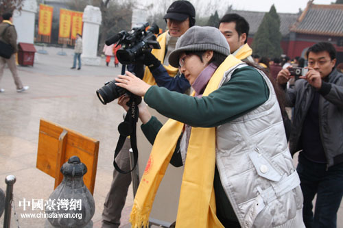 圖為臺(tái)灣媒體記者準(zhǔn)備進(jìn)行謁拜黃帝儀式(中國(guó)臺(tái)灣網(wǎng) 徐維彬 攝)