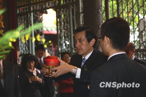 臺北龍山寺建寺二百七十周年紀念活動十二月十四日舉行,馬英九出席,并進行祈;顒印 中新社發(fā) 曾嘉 攝