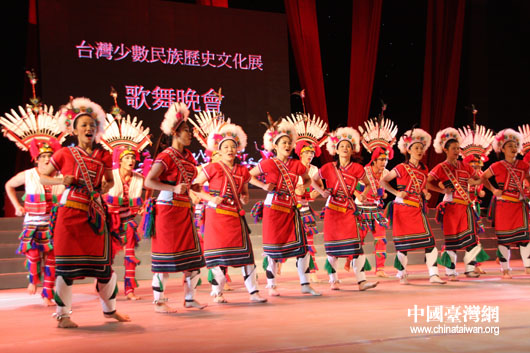 作為臺(tái)灣少數(shù)民族歷史文化展活動(dòng)的組成部分,一場(chǎng)“臺(tái)灣少數(shù)民族原生態(tài)歌舞晚會(huì)”21晚在全國(guó)政協(xié)禮堂上演。(中國(guó)臺(tái)灣網(wǎng) 鐘寶華 攝)