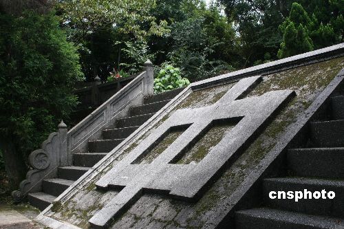 墓前斜坡上,用水泥雕成一個(gè)高大的“中”字。取意于閻錫山認(rèn)為:處事、為人、為政,都要“發(fā)于仁,歸于中”。 中新社發(fā) 耿軍 攝