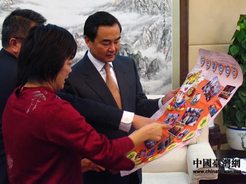 中國(guó)臺(tái)灣網(wǎng)1月21日北京消息 中共中央臺(tái)辦、國(guó)務(wù)院臺(tái)辦主任王毅今天在北京會(huì)見了廣東東莞臺(tái)商子弟學(xué)校董事長(zhǎng)葉宏燈及學(xué)校師生和家長(zhǎng)會(huì)代表。