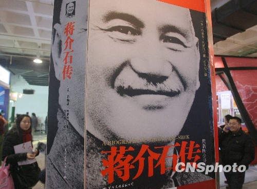 1月8日,參加北京圖書(shū)訂貨會(huì)的讀者從《蔣介石傳》的海報(bào)前走過(guò)。當(dāng)日,2010北京圖書(shū)訂貨會(huì)開(kāi)幕,將有1000多家圖書(shū)館參與現(xiàn)場(chǎng)采購(gòu)。近年來(lái),大陸逐漸興起了一股“蔣介石熱”,研究蔣介石的論文、書(shū)籍逐漸增多。在蔣介石的故鄉(xiāng)浙江奉化,連他最愛(ài)吃的千層餅都賣(mài)火了一條街。有臺(tái)灣媒體稱,“在大陸,只要是蔣介石留下的一點(diǎn)一滴,現(xiàn)在全成了寶! 中新社發(fā) 蘇丹 攝
