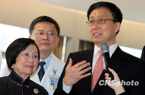 4月8日,上海市長韓正在參觀臺北振興醫(yī)院、結(jié)束臺北市行程時表示,沒到南部參訪是因世博會日程緊,在臺僅4天,下次到臺灣一定要到南部。左一為辜振甫先生遺孀辜嚴(yán)倬云。 中新社發(fā) 董會峰 攝