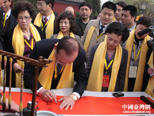 大典開始前,在黃帝故里祠門前,林豐正為黃帝故里題詞:華夏之光,照耀古今。圖片來源:河南省臺辦