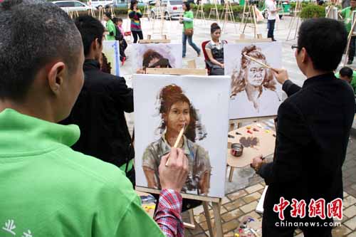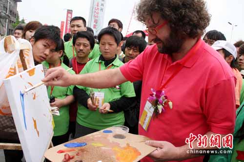 外國嘉賓現(xiàn)場繪畫。