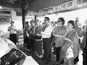 5月29日,臺灣地區(qū)副領(lǐng)導人蕭萬長的叔叔、81歲高齡的蕭火旺帶領(lǐng)54位蕭氏宗親,到南靖縣金山鎮(zhèn)霞涌村“四美堂”認親謁祖。(溫欣 戴俊祥)