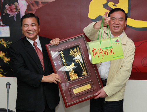 燕巢鄉(xiāng)鄉(xiāng)長吳德雄向呂祖善省長贈(zèng)送當(dāng)?shù)厮ㄕ憬∨_(tái)辦王健攝)