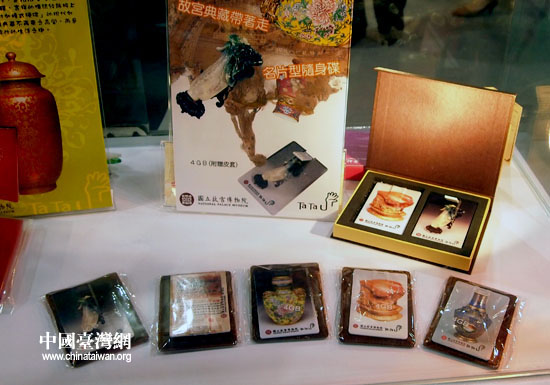 在臺(tái)北故宮博物院展臺(tái),記者看到了裝飾翠玉白菜的手機(jī)鏈、化妝鏡,刻有懷素狂草的名片夾,畫上典藏珍品的U盤,印有蘭亭序的硅膠桌墊……構(gòu)思的巧妙讓人在贊賞之余,也嗅到其中蘊(yùn)含的濃郁文化味兒。
