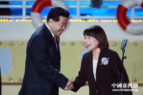 以“擴大民間交流、加強兩岸合作、促進共同發(fā)展”為主題的第二屆海峽論壇今晚19時30分在廈門會展中心隆重開幕,中共中央政治局常委、全國政協(xié)主席賈慶林與中國國民黨副主席、嘉義市市長黃敏惠握手。(中國臺灣網(wǎng) 鐘寶華 攝)