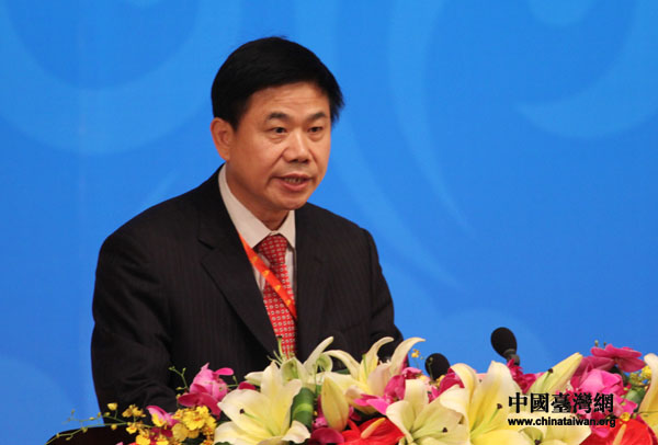 6月20日上午9時(shí),第二屆海峽論壇大會(huì)在廈門舉行,圖為福建省龍海市角美工業(yè)綜合開發(fā)區(qū)管委會(huì)主任、角美鎮(zhèn)鎮(zhèn)長江龍輝出席并發(fā)表演講。(中國臺(tái)灣網(wǎng) 鐘寶華 攝)