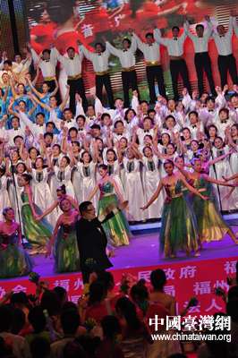 中國臺(tái)灣網(wǎng)6月22日福州消息 21日晚,由中國音樂家協(xié)會(huì)、福州市政府和福建省對(duì)外文化交流協(xié)會(huì)聯(lián)合主辦的“海峽論壇·第三屆海峽兩岸合唱節(jié)”在福州市體育館舉辦了閉幕式暨頒獎(jiǎng)音樂會(huì)。中共中央臺(tái)辦、國務(wù)院臺(tái)辦副主任葉克冬,中國音協(xié)分黨組書記、常務(wù)副主席徐沛東,福建省有關(guān)領(lǐng)導(dǎo)袁榮祥、唐國忠、蘇增添、李祖可等嘉賓,在閉幕式上向來自海峽兩岸參加本屆合唱節(jié)的獲獎(jiǎng)單位頒發(fā)了獎(jiǎng)杯和證書。