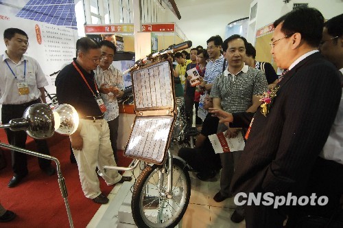 6月23日,一種利用太陽(yáng)能發(fā)電驅(qū)動(dòng)的“光動(dòng)車”亮相首屆海峽兩岸電博會(huì),受到眾多客商青睞。當(dāng)日,由海峽兩岸攜手舉辦的首屆海峽兩岸電機(jī)電器博覽會(huì)在福建寧德市揭幕,250多家臺(tái)灣企業(yè)的代表及來自美國(guó)、英國(guó)、法國(guó)、東南亞等電機(jī)主銷區(qū)的采購(gòu)商、經(jīng)銷商等逾6000名嘉賓參會(huì)。 中新社發(fā) 王東明 攝