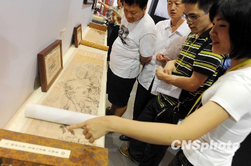 6月19日,首度參展亮相海峽兩岸文博會(huì)的臺(tái)北故宮博物院展示包括晉代王羲之、元代黃公望、清代朗世寧等中國古代著名國畫、書法家的名作高仿復(fù)制品,吸引觀眾近距離欣賞。當(dāng)日,以“一脈傳承,創(chuàng)意未來”為主題的第三屆海峽兩岸文博會(huì)在廈門開幕。 中新社發(fā) 劉可耕 攝