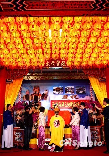 海峽兩岸三地道教界代表29日在臺北指南宮,藉紀念孚佑帝君呂洞賓成道1130周年活動,聯(lián)合舉行祈福大會,共同祈愿兩岸風調(diào)雨順,和諧安定,繁榮發(fā)展。