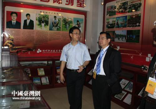 臺(tái)灣嶺東科技大學(xué)考察團(tuán)參觀湖州職業(yè)技術(shù)學(xué)院創(chuàng)業(yè)園陳列室(圖片來(lái)源:湖州市臺(tái)辦)