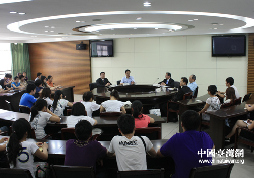 嶺東科技大學(xué)考察團(tuán)與湖州職業(yè)技術(shù)學(xué)院學(xué)生進(jìn)行座談(圖片來(lái)源:湖州市臺(tái)辦)